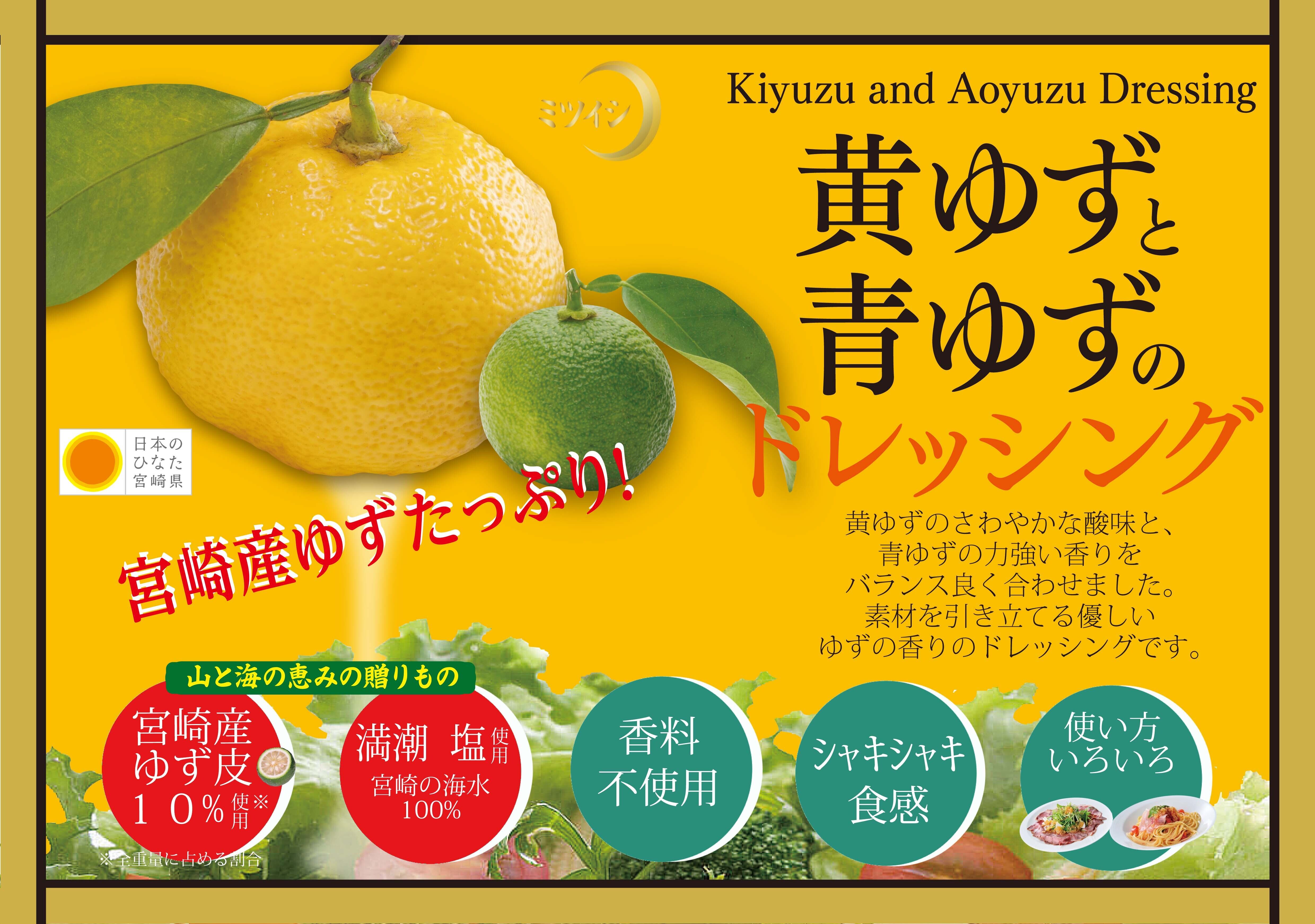 宮崎県特産の日向夏を丸ごと使用し、当社独自の製法で日向夏の爽やかさを余すことなく活かしドレッシングに仕上げました。