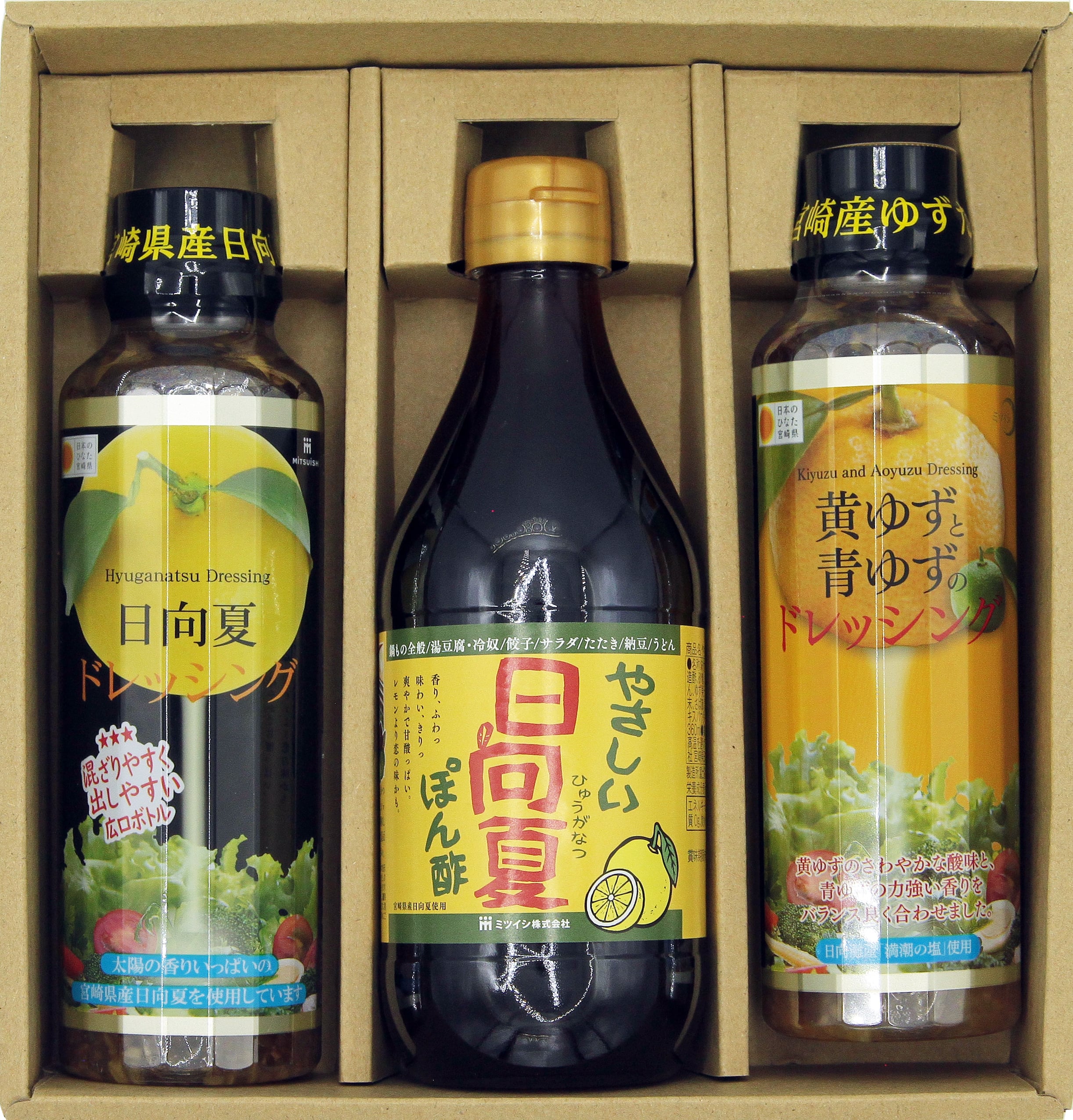 に加えて、新商品のやさしい日向夏ぽん酢をセットにしました。
