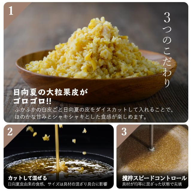 日向夏の皮シャキシャキとした食感が特徴で、和・洋・中さまざまな料理の可能性を引き出してくれる一品です。百貨店・スーパーの凄腕バイヤーも認めた商品で、全国メディアにも